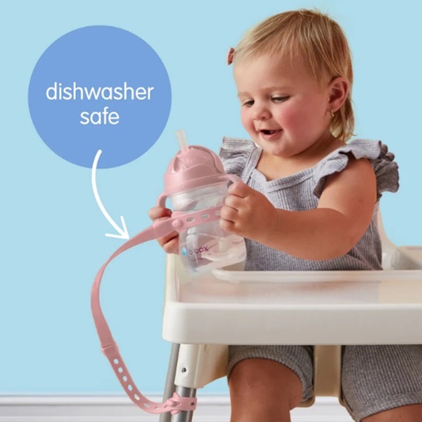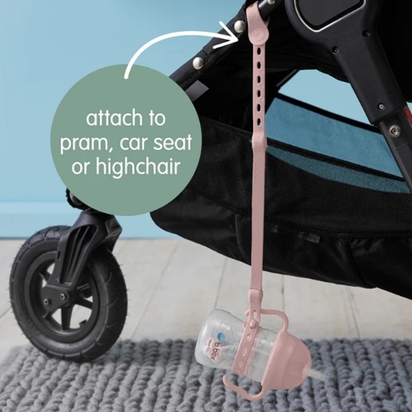 Smart and innovative holder for spout cups, bottles, pacifiers, toys, etc. which are attached to the pram, car seat or travel child seat and ensure that things do not end up on the floor or are lost. B.box Connect-a-Cup Blush is for safety reasons made in three parts with two safety buckles that release under load. The product is made of TPE and free of Phthalates, PVC and BPA.