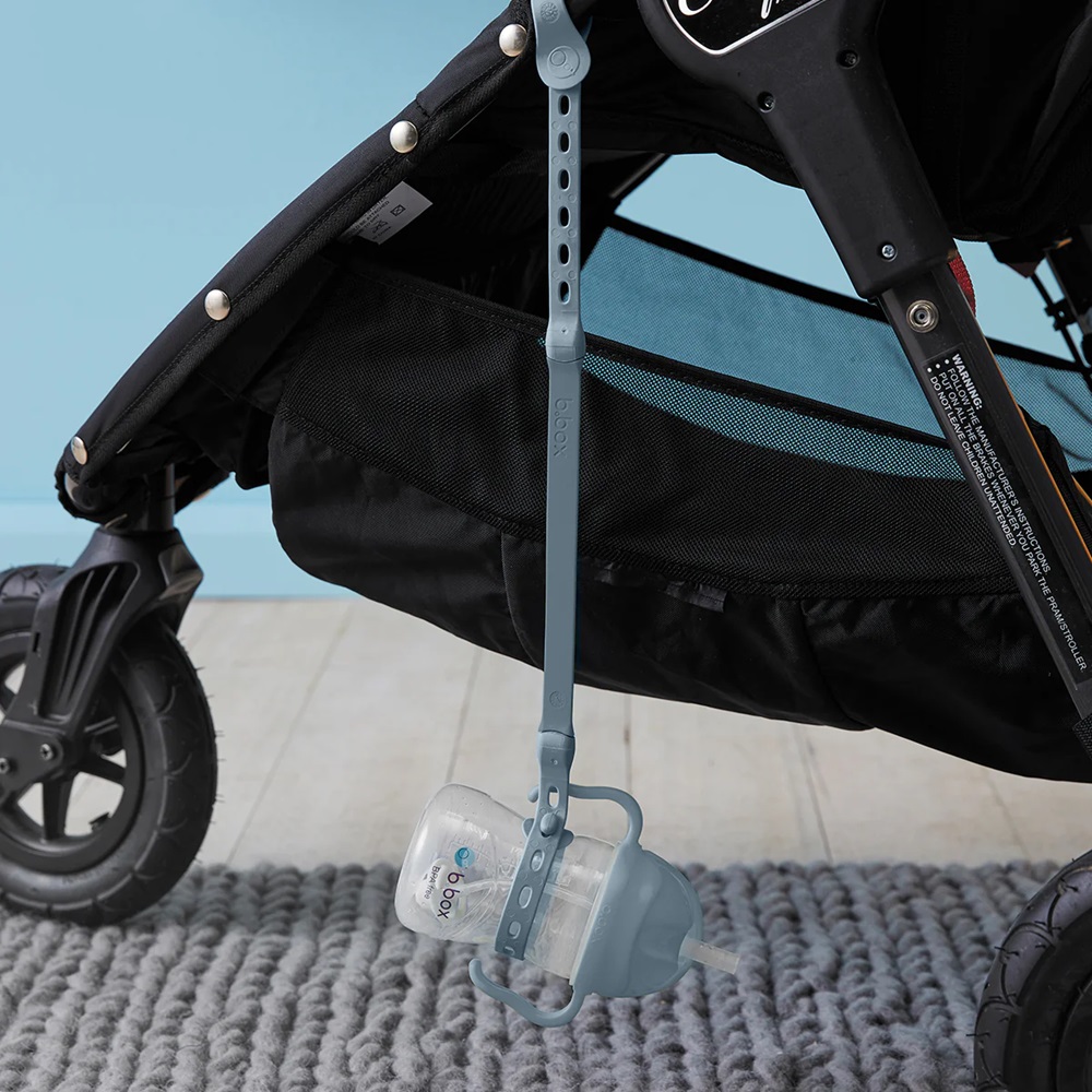 Smart and innovative holder for spout cups, bottles, pacifiers, toys, etc. which are attached to the pram, car seat or travel child seat and ensure that things do not end up on the floor or are lost. B.box Connect-a-Cup Ocean is for safety reasons made in three parts with two safety buckles that release under load. The product is made of TPE and free of Phthalates, PVC and BPA.