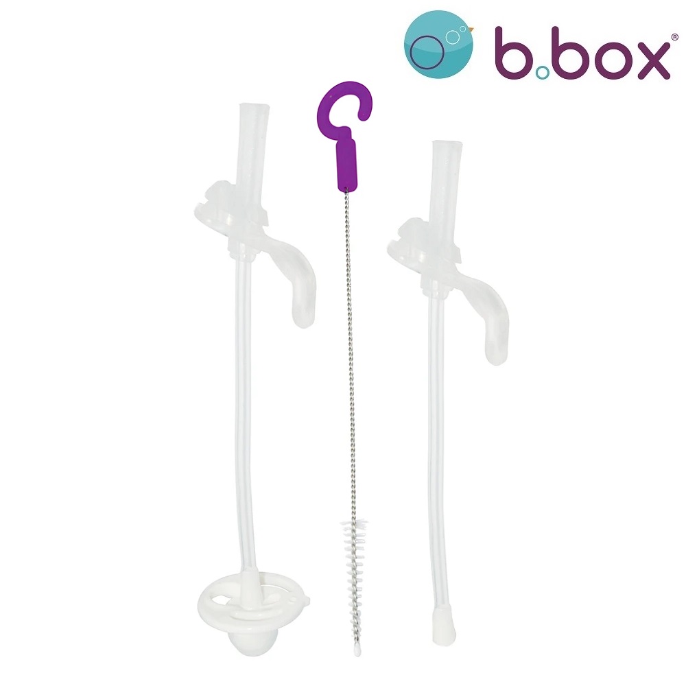 Spare straws for B.box Sippy Cup. The set contains two straws, one weight and one cleaning brush. B.box Replacement Straw & Cleaner Complect is free of Phthalates, PVC and BPA.