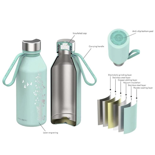 • Stainless steel thermos flask and water bottle