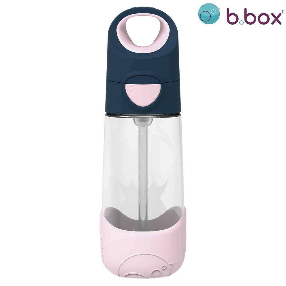 B.box Tritan Water Bottle Indigo Rose is a functional and durable water bottle for children. The water bottle is made of durable and non-toxic Tritan that does not emit odor or taste and is completely BPA-free. B.box Tritan has a unique triangular and ergonomic shape for the best grip in the child's hands. The straw is made of silicone and the bottle is leak-proof and spill-proof. The water bottle, which holds 450 ml, is closed with a lid that protects the removable straw from dirt and that the liquid leaks out. The lid is easy to open for the child thanks to a solid button. The B.box Tritan water bottle has a practical carrying handle and removable shock protection in the bottom of the bottle.