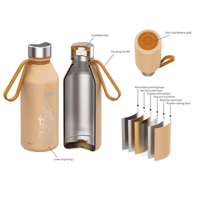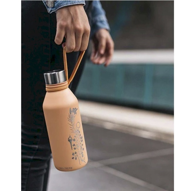 Carl Oscar Spirit TempFlask Energy is a leak-proof thermos flask and water bottle that keeps drinks hot or cold for a long time. The thermos flask, which is made of stainless steel (18/8) and food-grade steel, holds 500 ml and has double walls with vacuum insulation. This means that it keeps the drink cold for up to 24 hours and hot for up to 12 hours. Carl Oscar Spirit TempFlask is covered with a special non-toxic powder coating that makes it easy to grip, even with warm hands. The bottle has anti-slip at the bottom and a smart silicone carrying handle at the top. Since the bottle can be used over and over again, it is an excellent environmental choice. It is made of food-grade stainless steel so that it does not emit or retain any flavors. The thermos flask is completely free of BPA, phthalates and lead.