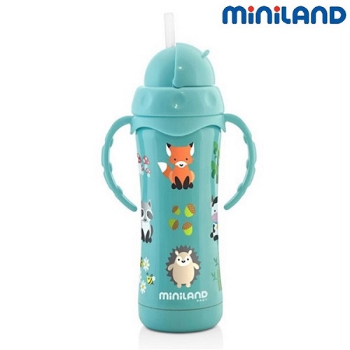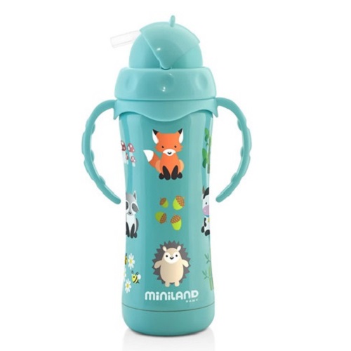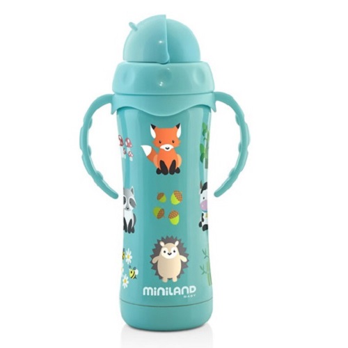 Smart and practical thermos flask for kids from stainless steel with thermos function. Miniland Thermokid Aqua thermos flask has a straw and keeps the drink hot or cold and is a functional alternative to plastic and aluminum bottles. It is made of stainless steel (18/8) on the inside for high insulation and is free of bisphenol A (BPA).