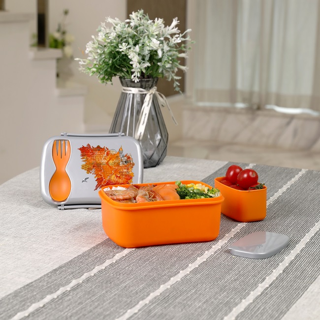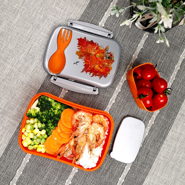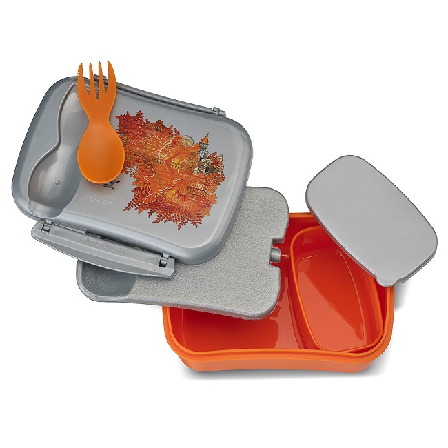 Carl Oscar Wisdom N'ice Box Fire is a smart and practical refrigerated lunch box that keeps food cool and fresh through a freezable cooling element that is fixed on the inside of the lid. The lunch box consists of a main box and a smaller box with a lid that can be placed inside the larger box. This is to avoid mixing the food, such as salad and sauce, during transport. The product also includes a practical multi-cutlery (spork) that is fixed in the lid. The cooling element is placed in the freezer (horizontally for at least eight hours) and then keeps the food cold for up to five hours at room temperature. Perfect for hand luggage or for takeaway food on the train, bus or car holiday.