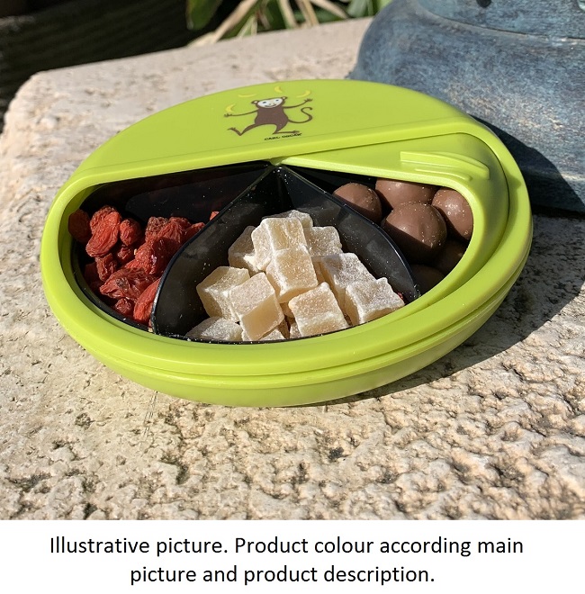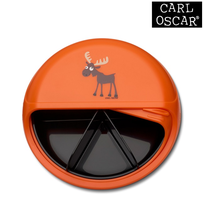 Innovative and smart snack box for kids. Inside the Carl Oscar SnackDISC Orange Moose is a carousel with one larger and four smaller compartments that can be filled with various snacks before the trip or excursion. Carl Oscar SnackDISC is made of BPA-free and durable hard plastic in nice design and wonderful colours. The snack box is closed by turning the lid, which is then also locked so that the snacks don´t fall out. The lid, bottom and snack carousel can easily be taken aport for cleaning or for puttning the carousel onley on the table or on the picnic blanket. Carl Oscar SnackDISC is perfect on the plane, bus, train or in the car but also on an excursion with school or kindergarten. Fill the snack box with berries, nuts, fruit or vegetable pieces.