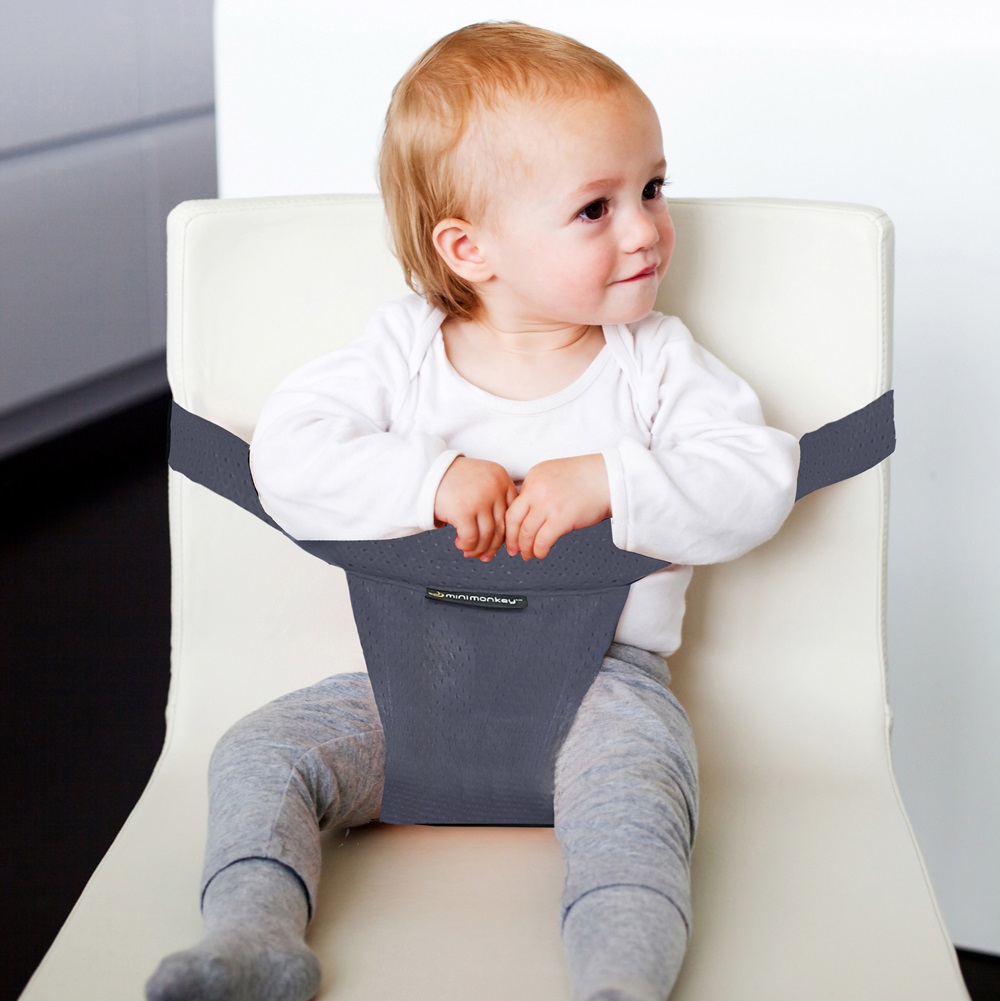 Minimonkey Mini Chair Pocket Grey is a safe, practical and stylish travel high chair made of fabric. After use the Minichair can be folded, which make it is easy to carry in your hand luggage, diaper bag or daypack. Minimonkey travel high chair works perfectly in restaurants, at the airport or when visiting relatives and friends.