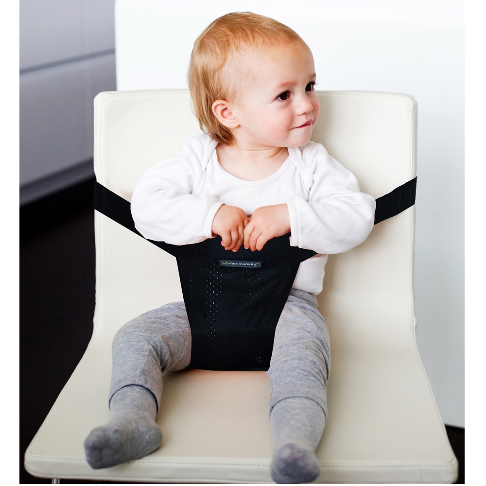 Minimonkey Mini Chair Pocket Black is a safe, practical and stylish travel high chair made of fabric. After use the Minichair can be folded, which make it is easy to carry in your hand luggage, diaper bag or daypack. Minimonkey travel high chair works perfectly in restaurants, at the airport or when visiting relatives and friends.