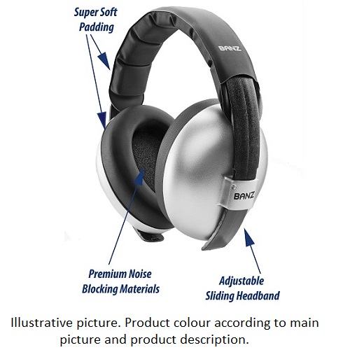 Ear defenders: Banz Bubzee Peace ear defenders are made especially to fit babies and young children (up to about 2 years). Banz earmuffs are comfortable for the child and provide good protection in noisy environments, such as on the plane, concerts and sporting events. Banz Bubzee ear defenders has soft and comfortable sealing rings around the child's ears, textile upholstery (cotton) and adjustable elastic headband for the best fit and comfort. The earmuffs are tested and approved within the EU (EN352-1: 1993) and have a certified attenuation rate of SNB 26.8 dB.
