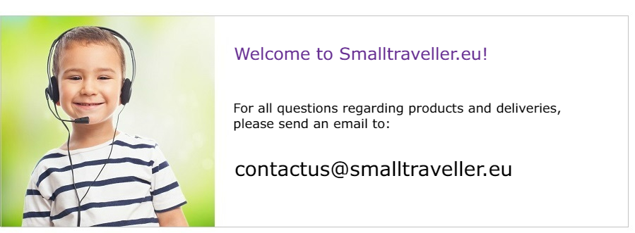 If you have have any questions regarding our products or deliveries, please send an email to contactus@smalltraveller.eu.