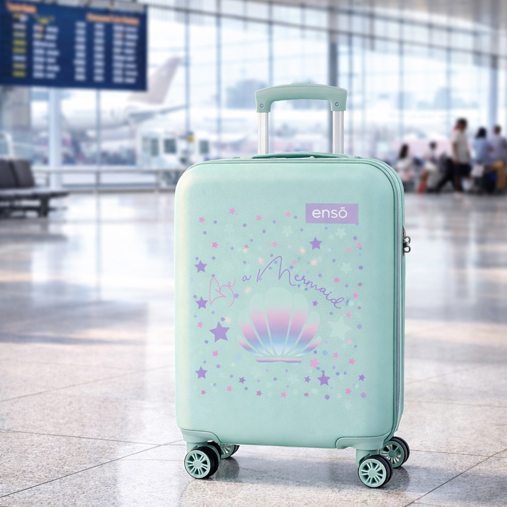 Enso Be A Mermaid is a stylish and functional suitcase and cabin bag for both children and adults made in durable ABS. The suitcase, which has a sturdy telescopic handle and four silent wheels that spin 360 degrees, is easy to maneuver and therefore fits perfectly in airports, for example. Enso Be A Mermaid has a spacious packing space of 37 liters where everything that needs to be taken on the trip can be accommodated. The storage space, which is coated, is divided into one side that closes with a zipper and one side with elastic bands to keep your suitcase organized. The suitcase is made of durable ABS plastic and has a stable telescopic handle, carrying handle and a code lock. The suitcase can also be used as a cabin bag as the size (55 x 40 x 20 cm) fits within IATA's rules for hand luggage (however, check what applies to your airline).