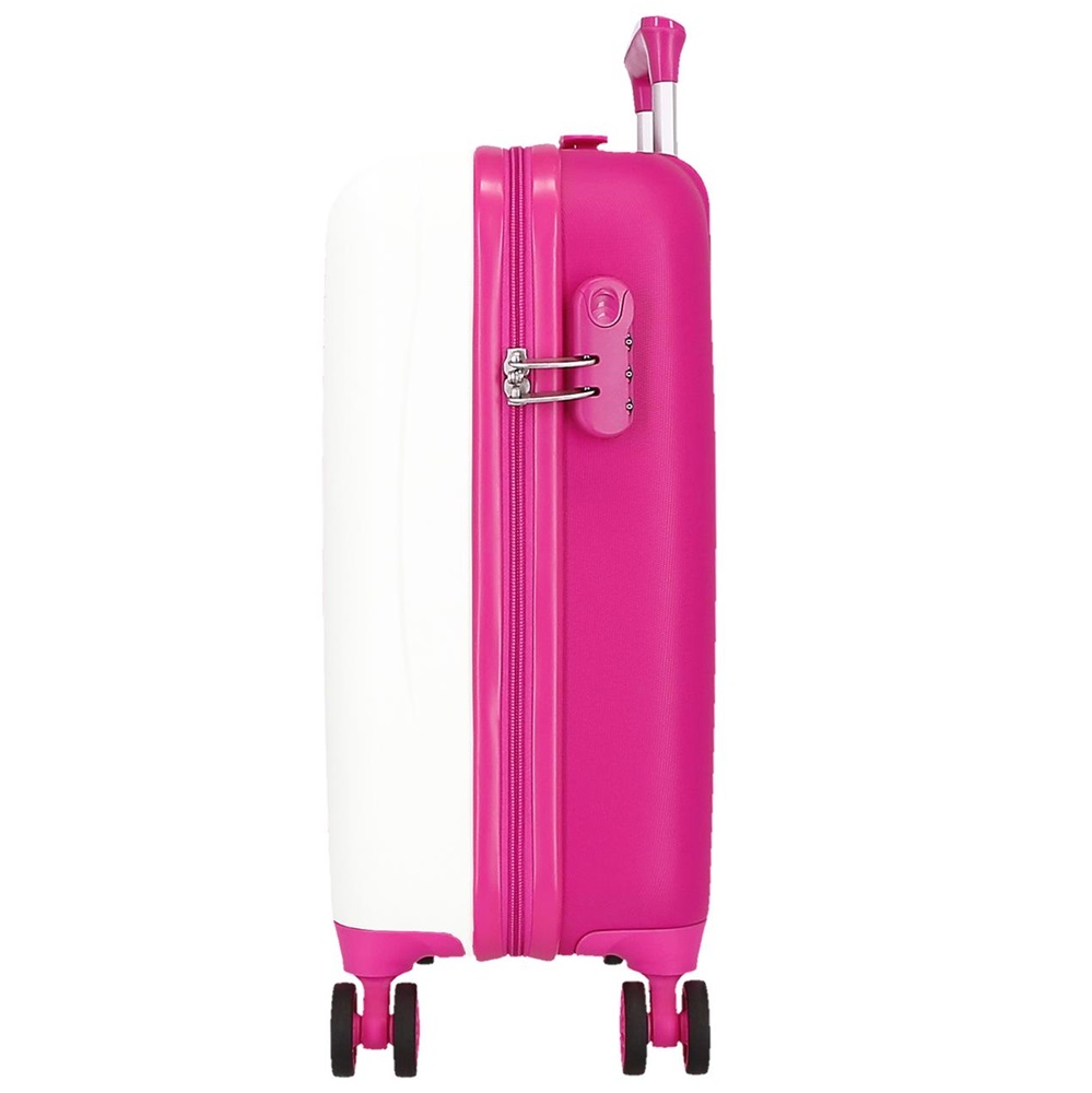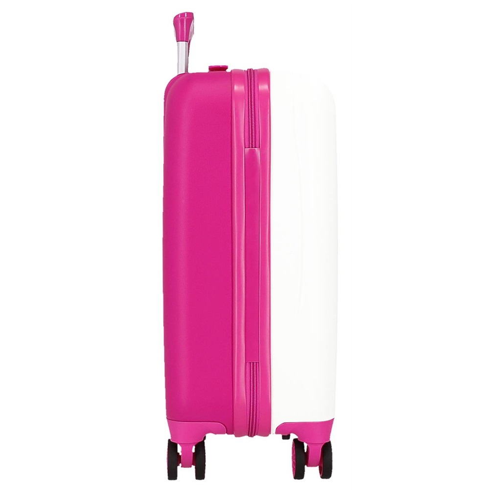 The children's suitcase Enso Magic Summer is a functional and durable suitcase made of ABS plastic with a telescopic handle and four silent wheels. The wheels are swivel in 360 degrees, which provides maximum maneuverability when the suitcase is to be moved, for example between gates at the airport. The suitcase has 28 liters of luggage space with straps to hold the content in place during the trip. The outer dimensions (50 x 33 x 20 cm) fall within IATA's recommended dimensions for hand luggage (check what applies with your airline).