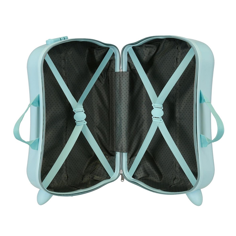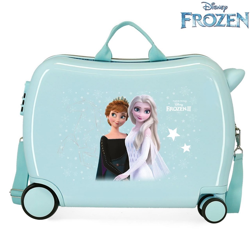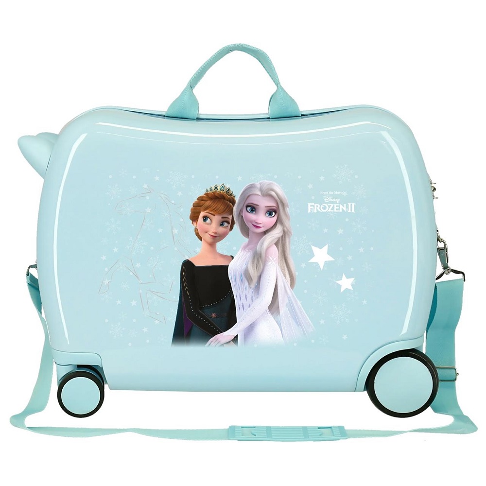 Durable, practical and fun ride on suitcase for children with a nice Frozen motif. The Frosted Light suitcase has quiet and soft wheels (front wheels turning 360 degrees), a combined drawstring and carrying strap and a code lock. The ride on suitcase works really well to sit and ride on (up to 30 kg!) and is perfect for tired legs or as a toy while waiting, for example at airports. Inside the suitcase there is plenty of space for all the children's things. The bag has different mounts so that it can both be pulled (the child rides) and carried by the parent and slightly older children as a shoulder bag. As the size of the suitcase fits within the IATA regulation of handlugage, the suitcase can be taken on board the aircraft (however, check what rules apply to your airline).