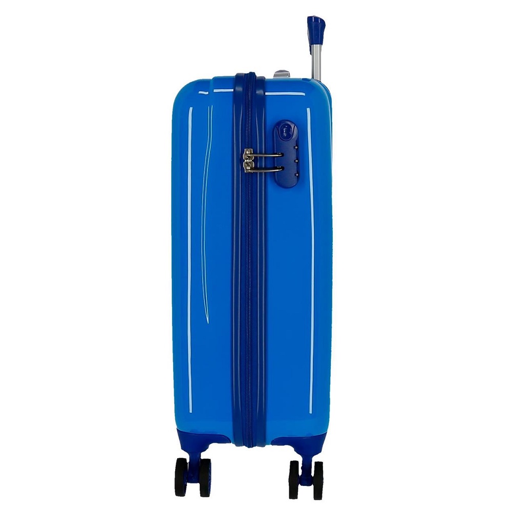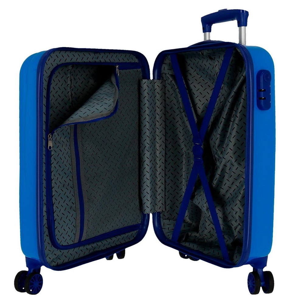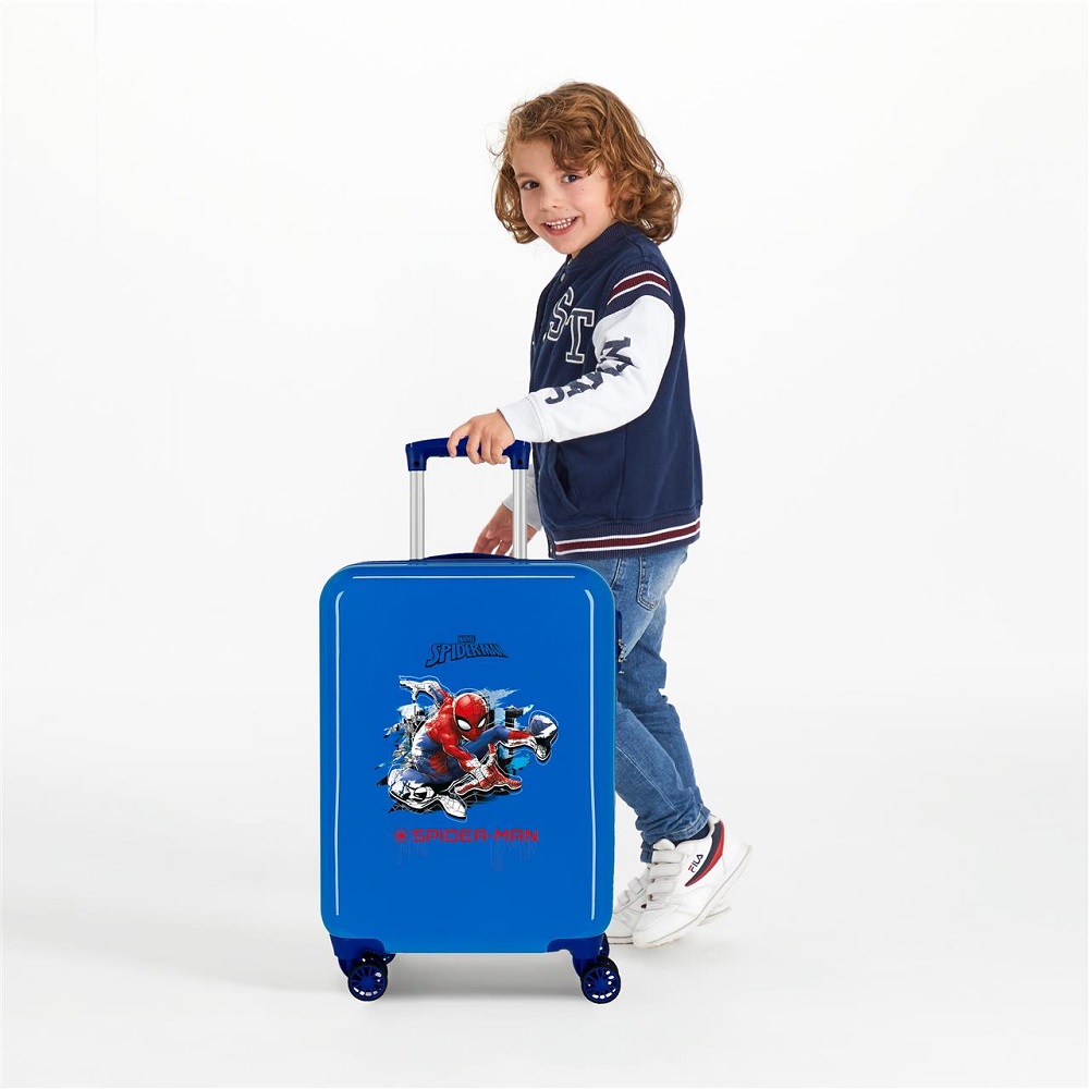 The children's suitcase Spiderman Geo Blue is a functional and durable suitcase made of ABS plastic with a telescopic handle and four silent wheels. The wheels are swivel in 360 degrees, which provides maximum maneuverability when the suitcase is to be moved, for example between gates at the airport. The suitcase has 33 liters of luggage space with one side with straps and one side with a closable (zipper) packing area, which means that things are stable in the suitcase during the trip. The outer dimensions (55 x 34 x 20 cm) fall within IATA's recommended dimensions for hand luggage (check what applies with your airline).