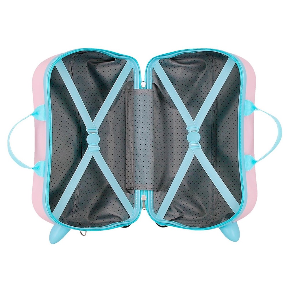 Durable, practical and fun ride on suitcase for children with a nice The Aristocats motif. The Aristocats Marie suitcase has quiet and soft wheels (front wheels turning 360 degrees), a combined drawstring and carrying strap and a code lock. The ride on suitcase works really well to sit and ride on (up to 25 kg!) and is perfect for tired legs or as a toy while waiting, for example at airports. Inside the suitcase there is plenty of space for all the children's things. The suitcase has different mounts so that it can both be pulled (the child rides) and carried by the parent and slightly older children as a shoulder bag. As the size of the suitcase fits within the IATA regulation of handlugage, the suitcase can be taken on board the aircraft (however, check what rules apply to your airline).