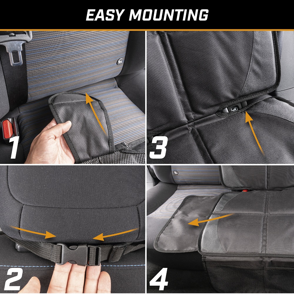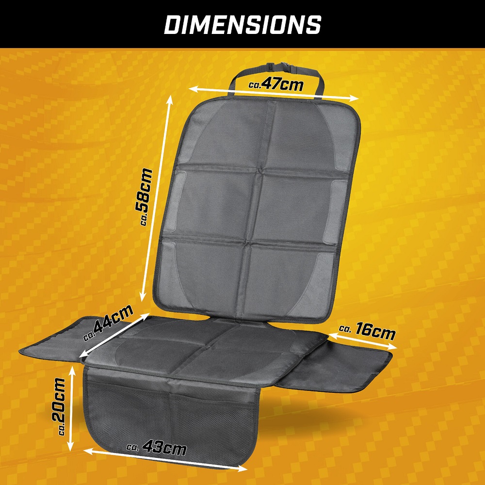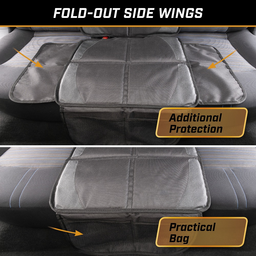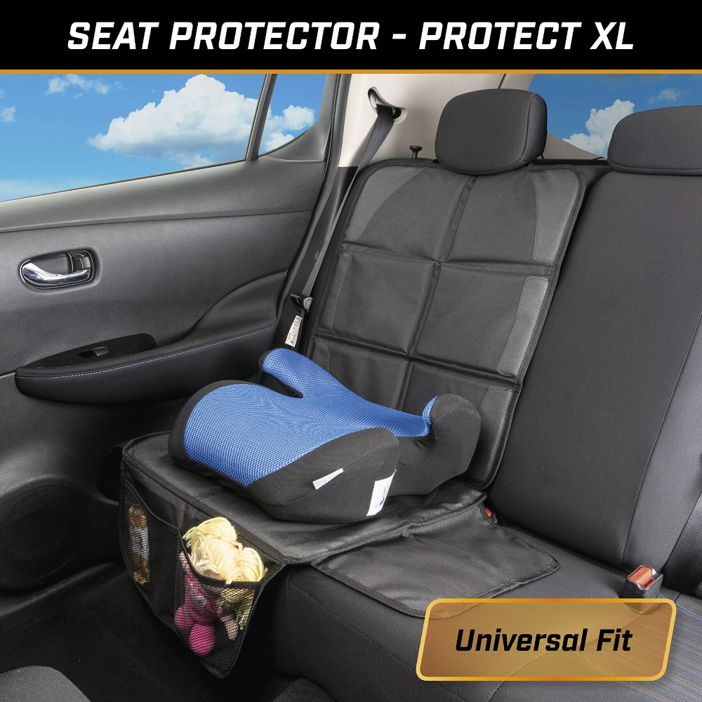 Walser Protect XL car seat protector, is a durable and padded cover, which protects the rear seat from dirt, scratches and pressure marks from the car seat. The seat protector, which can be used for both front-facing and rear-facing child car seats, is Isofix-compatible (with space for a seat belt) and has anti-slip on both sides, so that both the car seat and the seat protector are stable. On the front, the seat protector has two practical mesh pockets for storing of small items. The cover is made of water and dirt-repellent material and is easy to clean.
