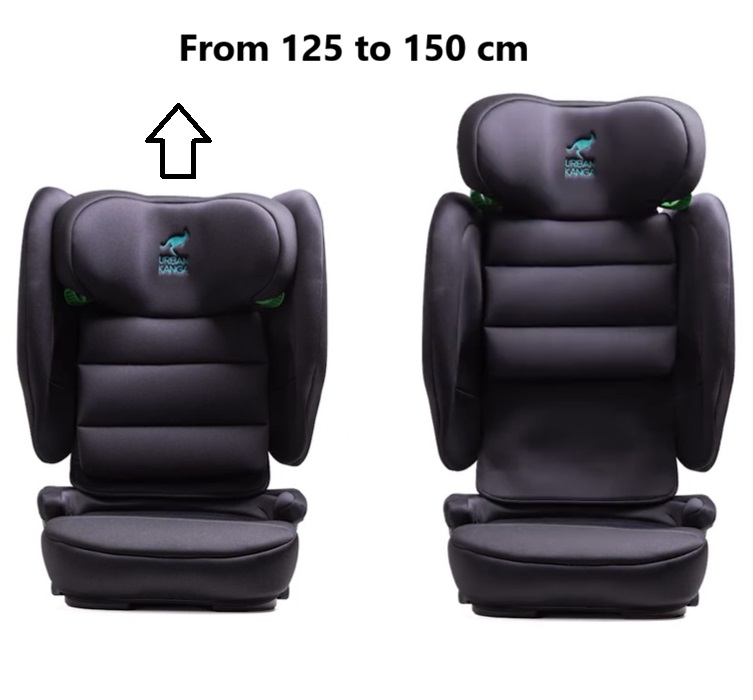 Urban Kanga Wallaroo Up is a smart and innovative foldable car seat. When folded, it becomes compact (52 × 45 × 25 cm) and weighs only 5 kg, making it perfect to bring along and use while traveling in taxis, shuttle buses, or rental cars. Of course, the Wallaroo Up car seat is also designed for everyday use in your own car. The car seat is ISOFIX-compatible and has been safety tested according to the EU standard ECE R129. It is intended for children between 100 and 150 cm in height. The backrest is adjustable in height from 58.5 cm to 82.5 cm. The seat features side-impact protection with energy-absorbing materials in the side wings and a deeper headrest. The additional side-impact protection further reduces the forces on the child’s head and neck area in the event of a side collision. The cover is made from high-quality materials that provide excellent comfort and durability. The seat cushion is soft and comfortable, with a layer of memory foam to ensure the child sits comfortably in the car seat.