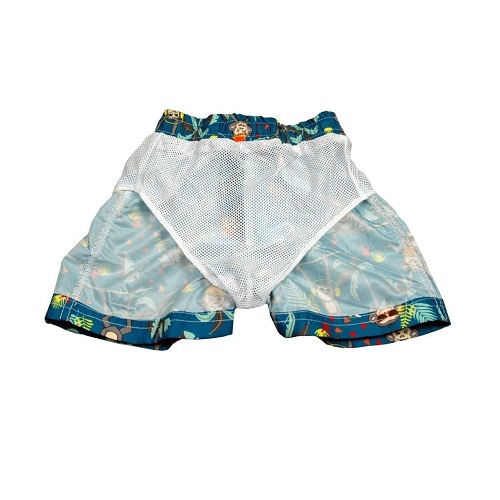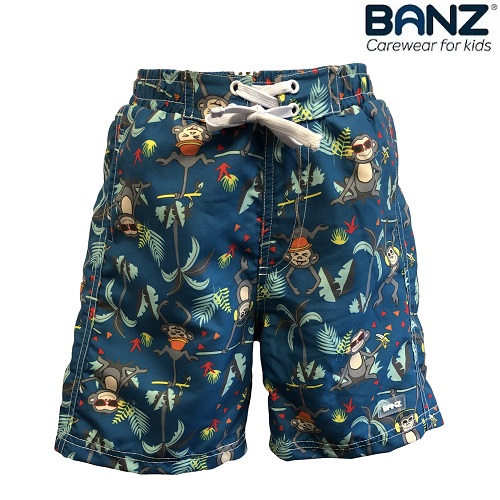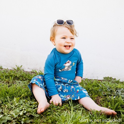 Banz Board Shorts Petrol Jungle are tough and functional swim shorts for children, to be used both in the pool and in the sea. The swim shorts have a sun protection factor of UPF 50+ and are made of materials that keep their shape and do not fade or change color in chlorine water. The shorts have inner troussers, drawstring at the waist, dry quickly after use and can be machine washed. Take along on a sun holiday or use the sea and pool at home.