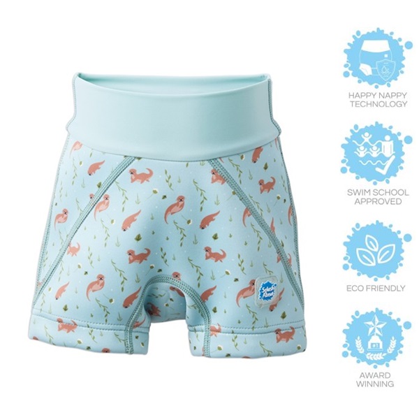 SplashAbout Splash Jammer Playful Otters, are tight-fitting and comfortable diaper swim shorts intended for slightly older children who have come out of the diaper age. Splash Jammers are made of dense Neoprene and with tight bands at the waist and thighs that prevent embarrassing and unhygienic leaks and accidents in the pool. SplashAbput's products are developed together with swimming instructors in United Kingdom. Use Splash Jammers at the swimming school or in the pool on holiday.