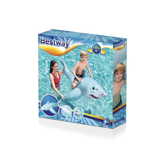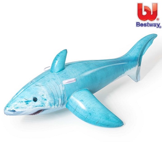 Bestway Shark XL is a large and inflatable pool float made in a nice and stable design. The shark is large in size (183 x 102 cm) and equipped with a practical handles for the child to hold on to. The wide base makes it stable in the water. Bestway XL Shark is made of strong vinyl that is resistant to both sun and salt water. Intended for children from about 3 years (up to 40 kg).