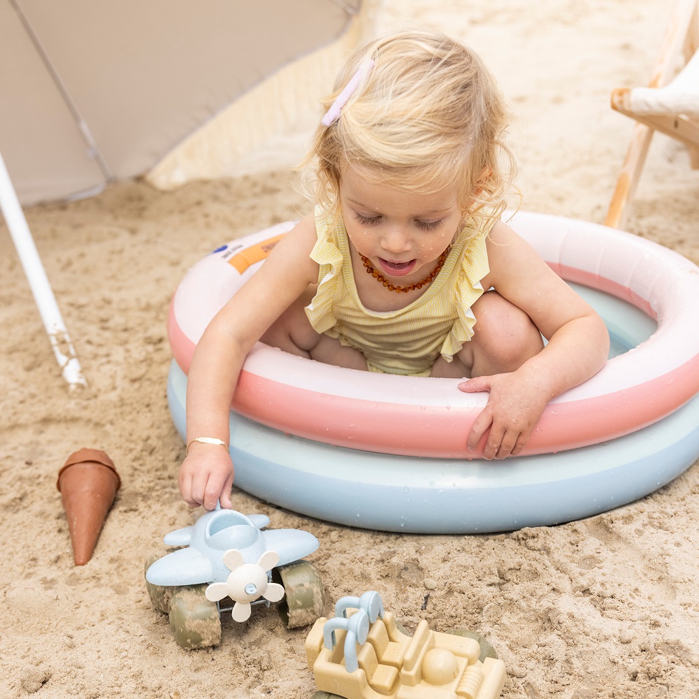 Swim Essentials Rainbow Mini Pool is a lovely inflatable mini pool for babies and small children. The pool is 60 cm in diameter and holds 15 liters of water. The Swim Essentials baby pool has two separate air chambers with safety valves, is safety tested according to EU standards and is completely free of toxic chemicals. Uninflated, the pool is so small that it can easily be taken along on the holiday trip or to the beach at home.