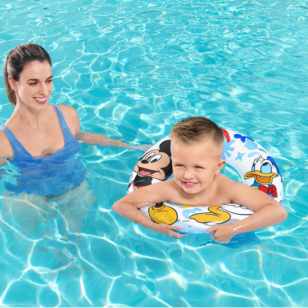 Bestway Mickey Mouse inflatable swim ring for children for beautiful days in the sea and pool. The swim ring has a safety valve, is made of strong vinyl, is CE-marked and is intended for children from 3-6 years.