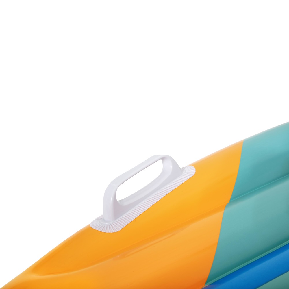 The Bestway Surf Rider Orange is an inflatable swimming mattress and surfboard in a tough and stable design. The mattress is made of strong vinyl and has two stable handles. The mattress is 114 x 46 cm and has two separate air chambers with safety valves. Take the Surf Rider with you on holiday in the sun or use it at home in the pool or in the sea. Designed for children from 3-10 years (max 60 kg).