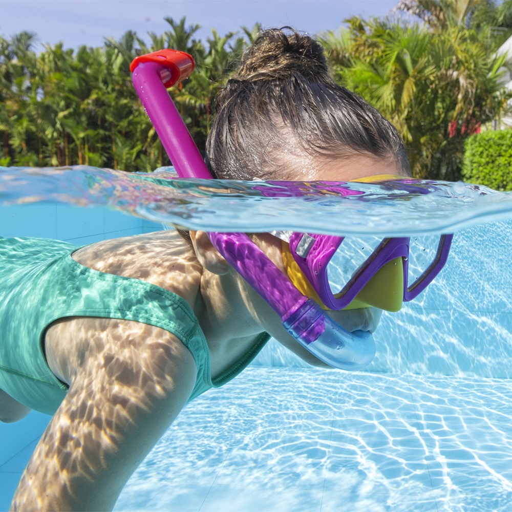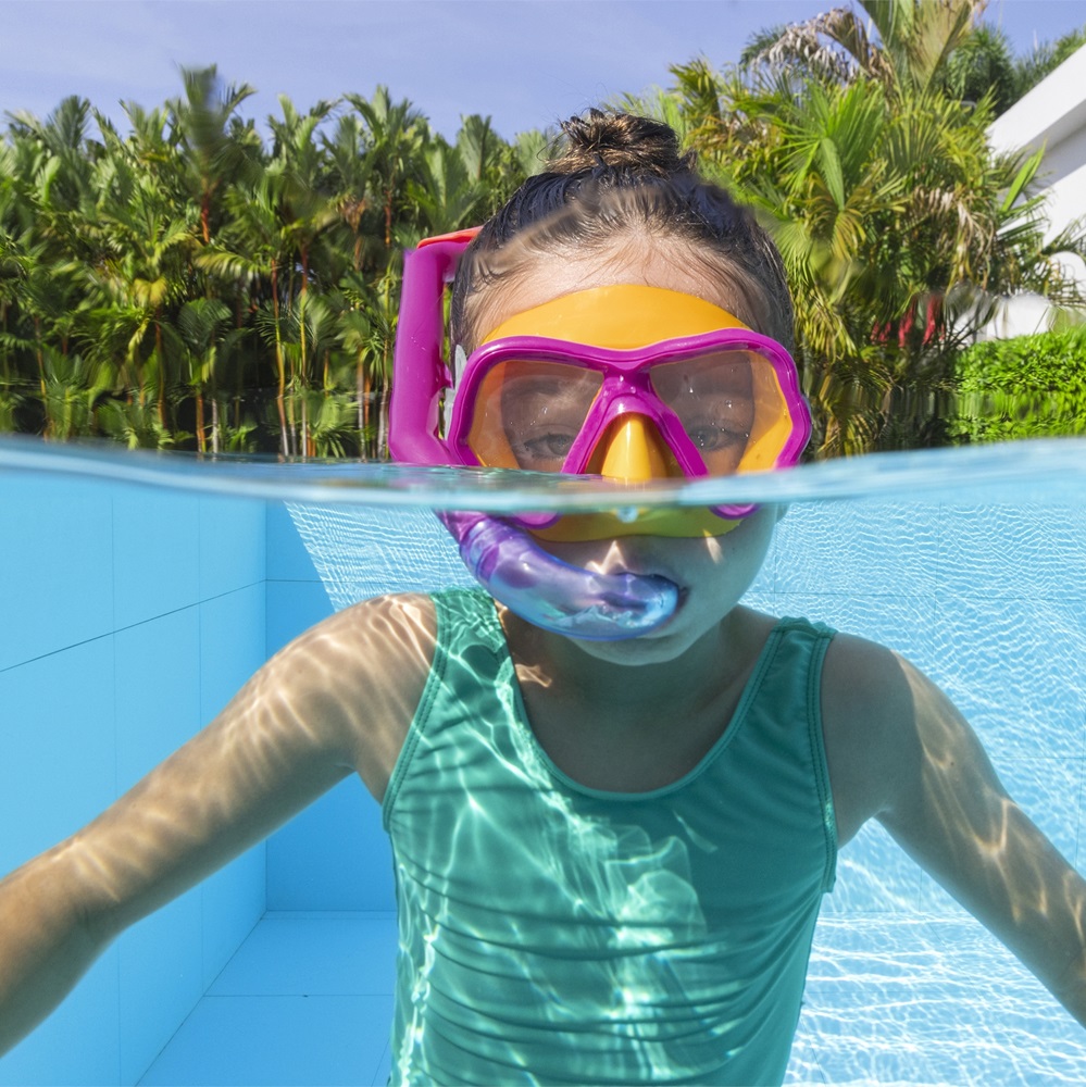 Bestway Dominator Pink is a set with mask and snorkel for children above 3 years of age with a good fit and visibility for days in the pool or in the sea. The Bestway Dominator mask has durable glass (impact resistant Lens) that protects children's eyes from chlorine and salt water and is made of allergy-friendly latex-free material.