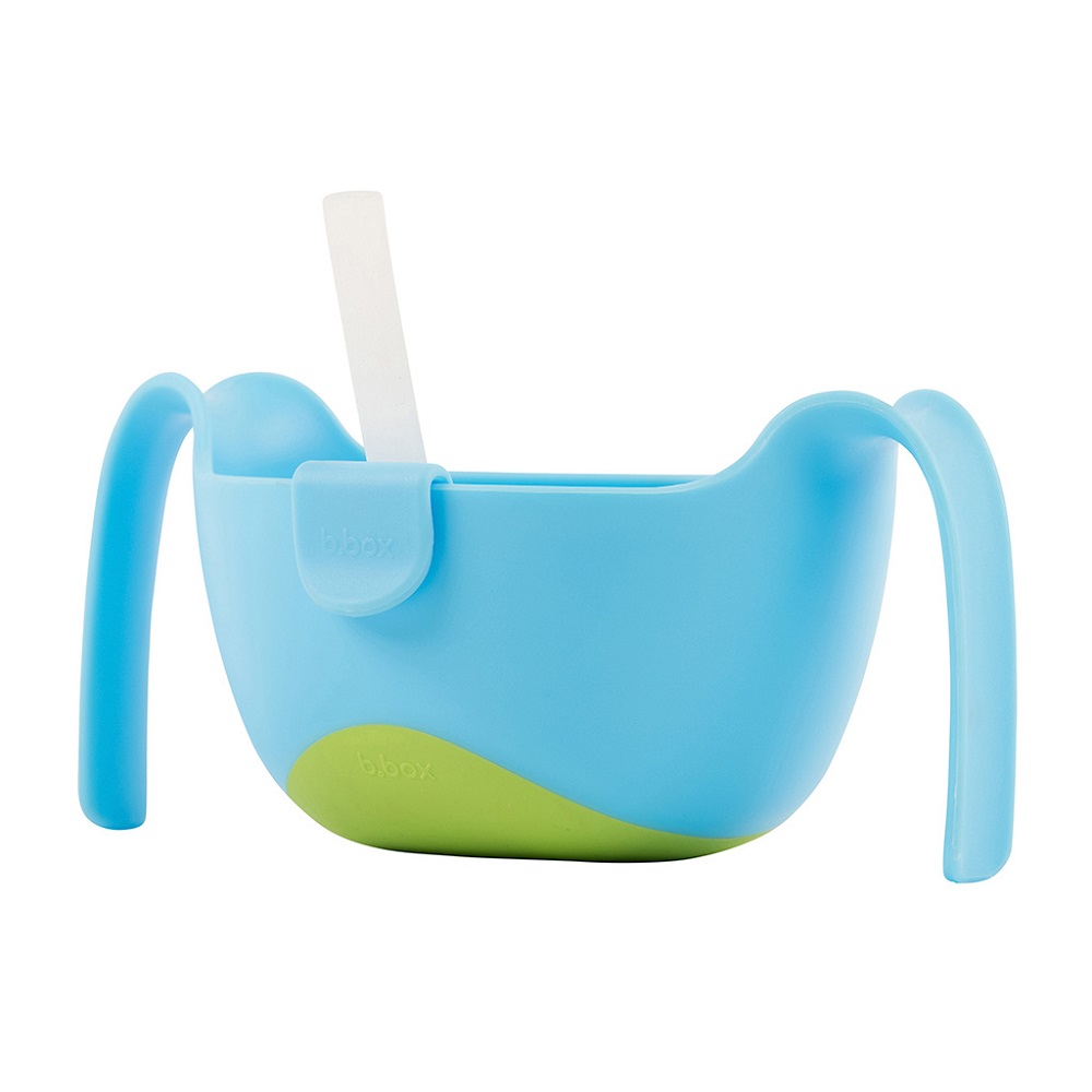 Award-winning multifunctional food bowl with straw for kids. B.box Bowl and Straw XL Ocean Breeze is an innovative product that can be used as a regular bowl for feeding with a spoon or fork, and with the included straw (which is attached to the edge of the bowl), the child can also drink from the bowl (e.g. milk or soup). B.box Bowl and Straw XL has grip-friendly and sturdy handles, anti-slip at the bottom and a tight-fitting lid.