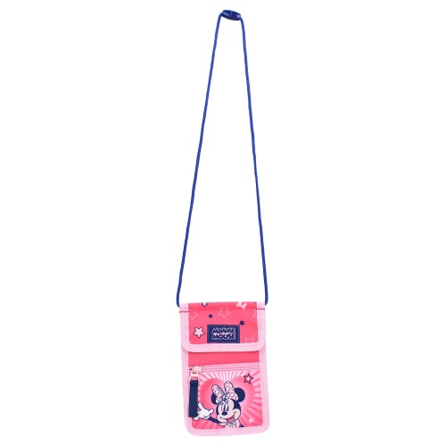 Minnie Mouse Choose to Shine is a nice and practical hanging wallet and neck pouch for children to hang around the neck. In the neck pouch there is good space for money, travel documents and cards and in the front pocket the coins can be stored. The hanging wallet is closed with velcro and hung around the neck with a durable string.