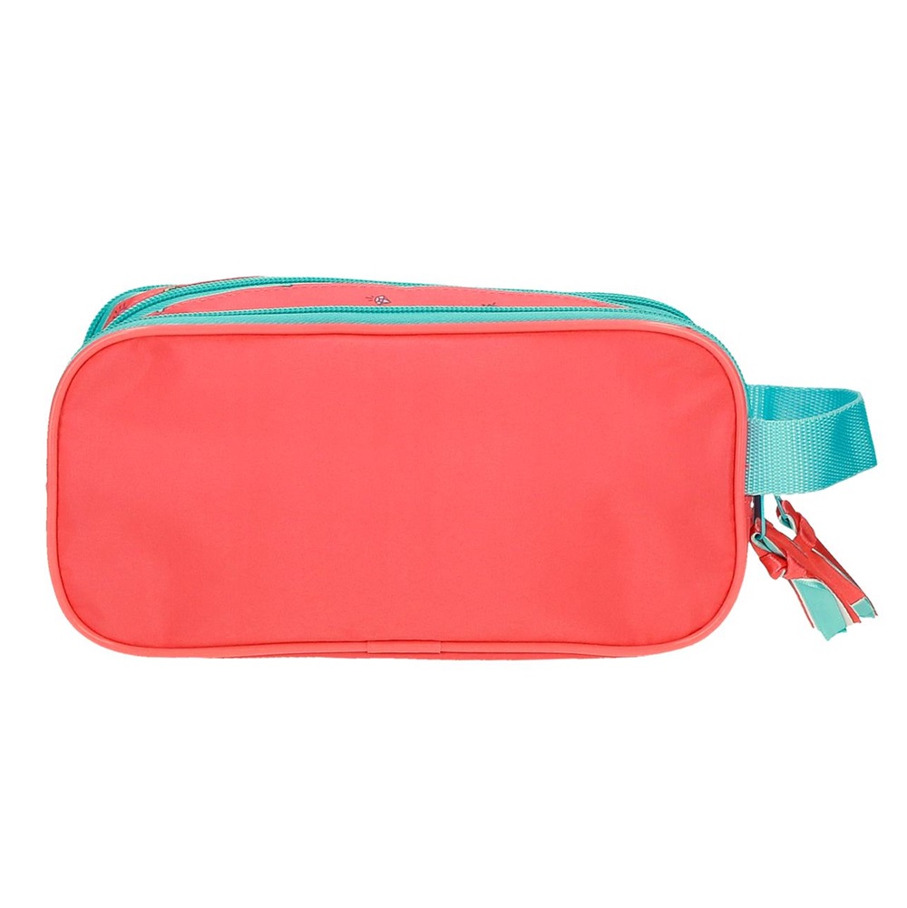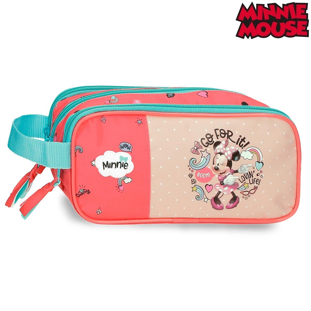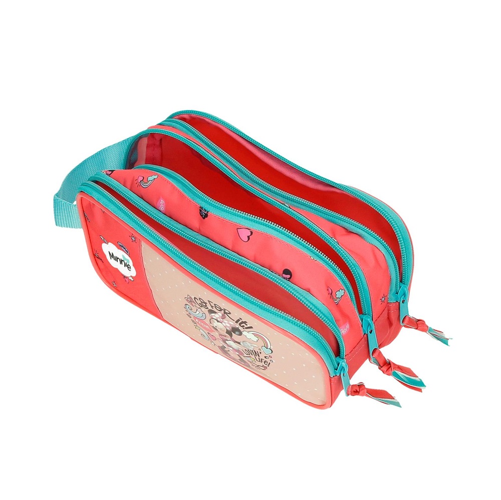 Minnie Mouse Loving Life is a cute and practical toiletry bag for children made in a nice and durable design. The toiletry bag has three compartments that close with a zipper and is made of water-repellent material. On the side, the toiletry bag has a hanging loop. In their own toiletry bag, the child can pack all the toiletries that will be taken on the trip or for an overnight stay with relatives or friends.