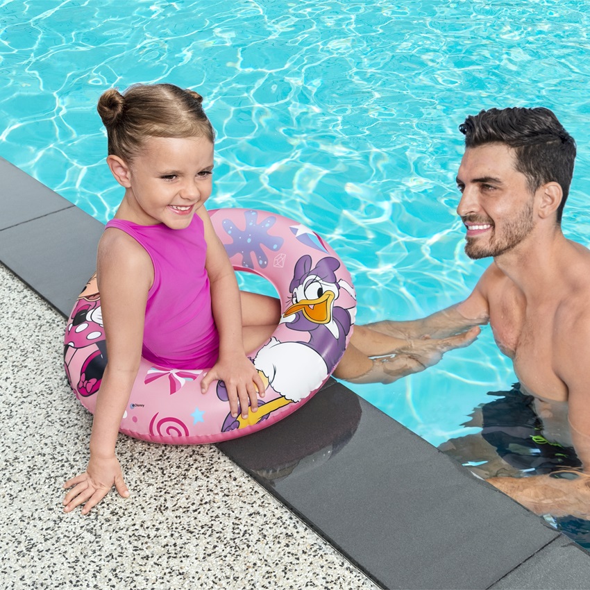 Inflatable swim ring for children made in a nice Disney design. The Minnie Mosue Pink swim ring is made of durable material and equipped with a safety valve. The swim ring is 56 cm in diameter and is intended for children aged 3-6 years. Perfect to use both in the pool and the sea.