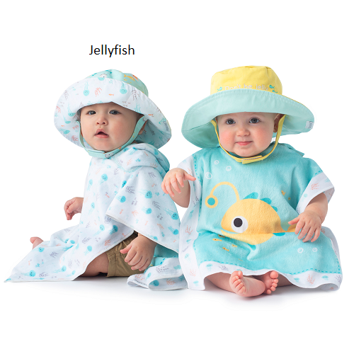 FlapJackKids Reversable Jellyfish is a cute and protective sun hat for children and babies made of soft and comfortable material with high sun protection (UPF 50+) which protects the child's head and face from the sun's dangerous UV rays. The sun hat, which is reversible, has a large brim and chin string. It’s made of light and splash-proof material with good ventilation.