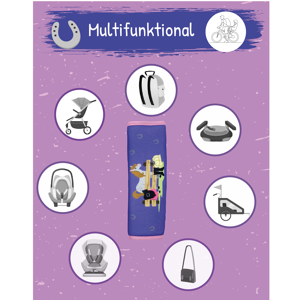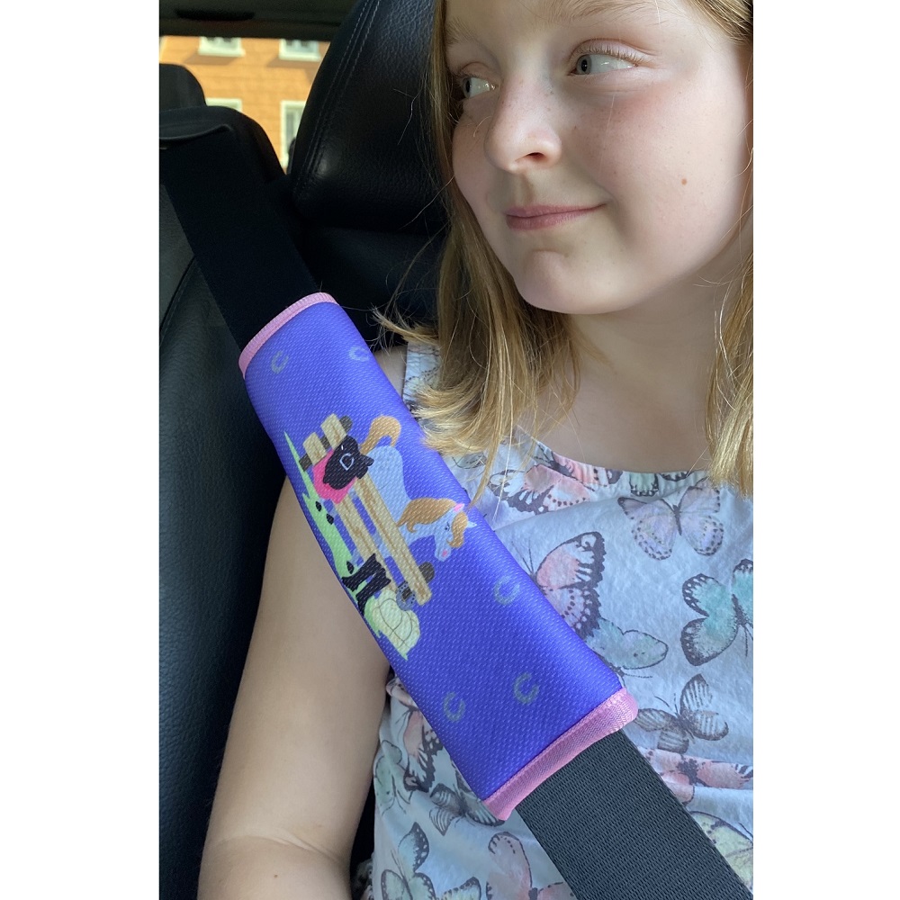 To ease the pressure on the child's chest, a soft and cozy belt cover can come in handy on car holidays. Heckbo Horse is a universal seat bek´lt cover that fits all common types of sea belts. The seat belt cover is 21 cm (length) x 6 cm (width) and fastens with velcro around the seat belt.