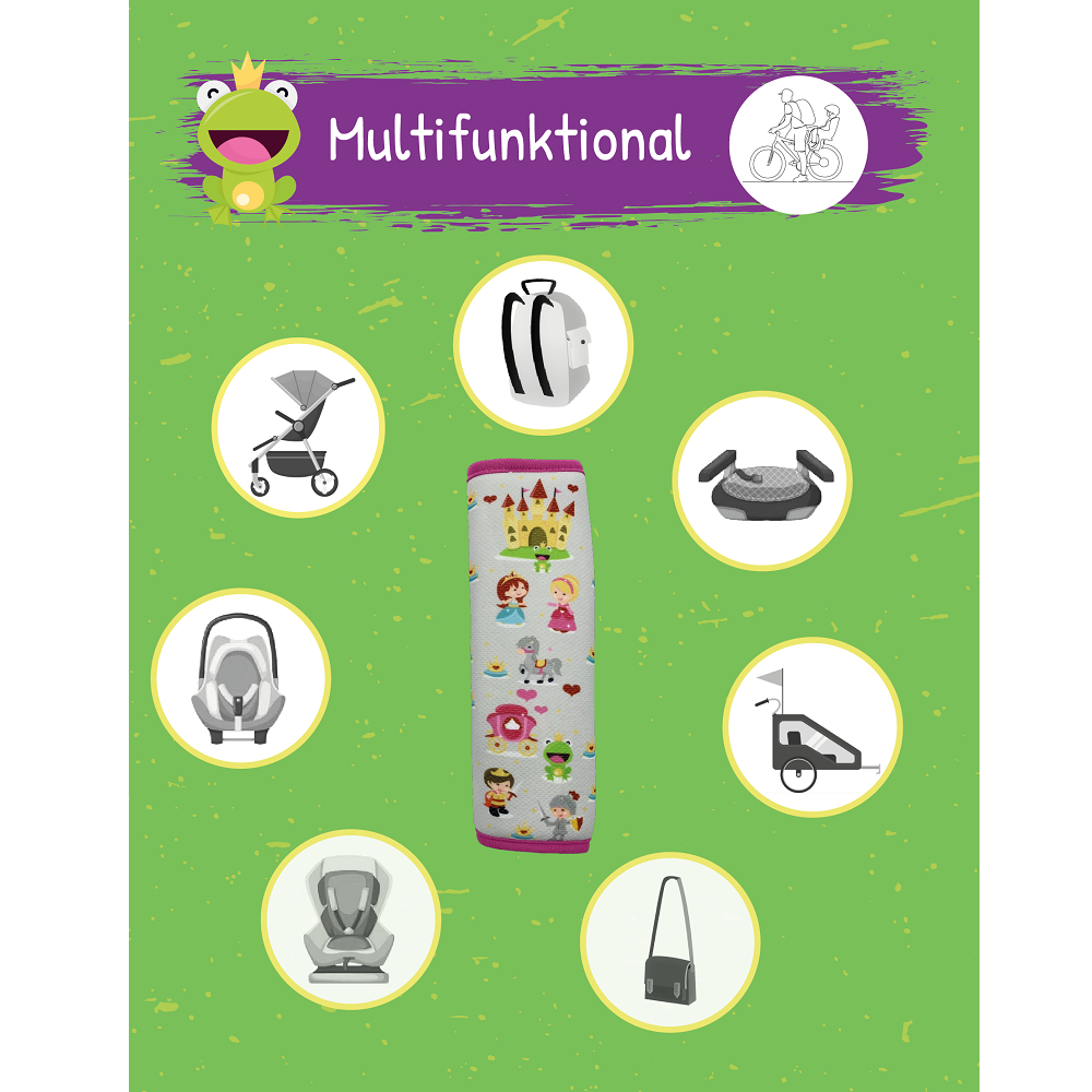 To ease the pressure on the child's chest, a soft and cozy belt cover can come in handy on car holidays. Heckbo Princesses is a universal seat bek´lt cover that fits all common types of sea belts. The seat belt cover is 21 cm (length) x 6 cm (width) and fastens with velcro around the seat belt.