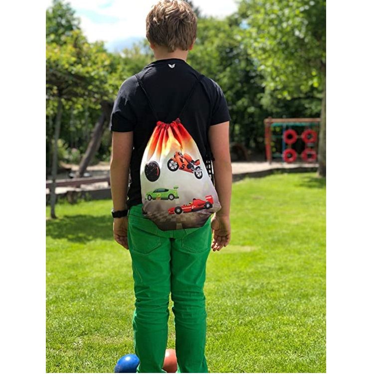 The stylish drawstring bag Racing from German Heckbo is perfect for school gymnastics and training, but also works great as a beach bag and a stuff bag for travel. The bag is 40 x 32 cm and closes with strings that can also be used to carry the gym bag on your back.