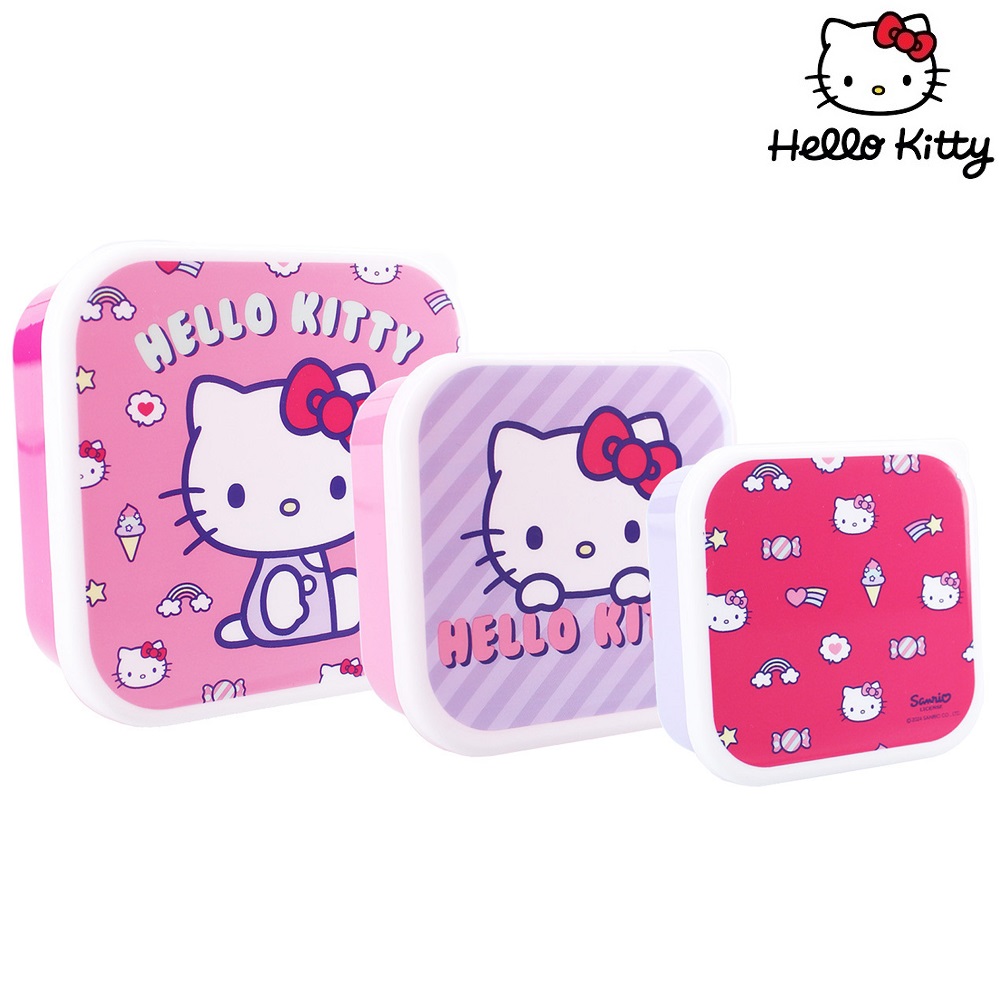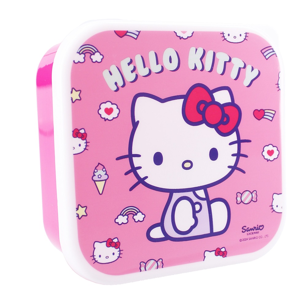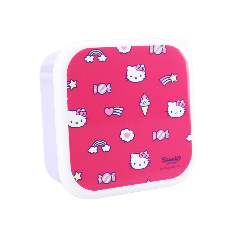 Hello Kitty Fresh Bite is a practical set of three snack boxes with lids, perfect for children’s meals and snacks. This adorable Hello Kitty-themed set includes boxes in three different sizes, which conveniently nest inside one another when not in use. Each box is made from non-toxic, food-safe, and durable materials. Take them along on trips or outings and fill them with a sandwich, nuts, fruit pieces, biscuits, or other small treats. Perfect for everyday use as well, to school or kindergarten.