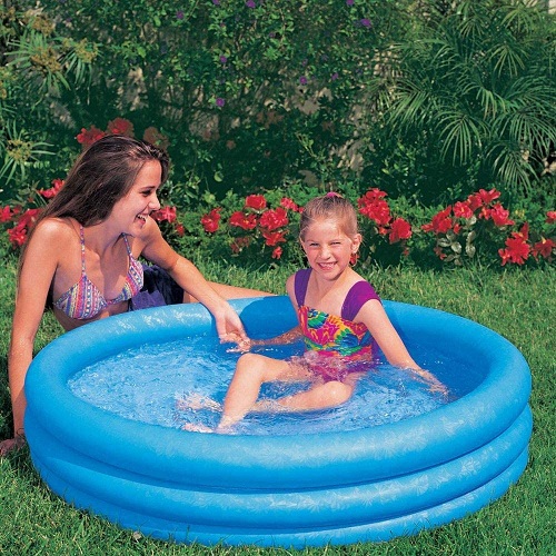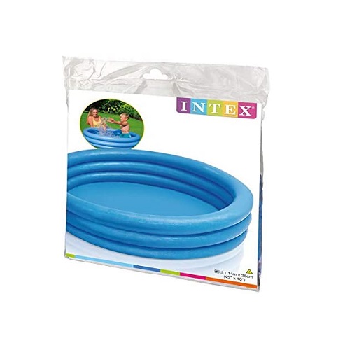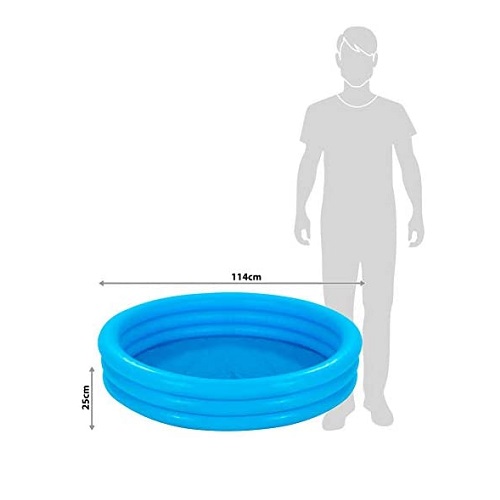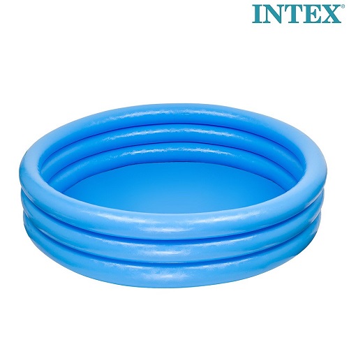 Lovely children's inflatable pool for bathing during hot and sunny days in the garden, on the beach or on a holiday trip. Intex inflatable pool Crystal Blue has three separate air chambers with safety valves and is 114 cm in diameter. When the air is taken out and the pool is folded, it becomes so small that it can even be included in the suitcase for the sun holiday.