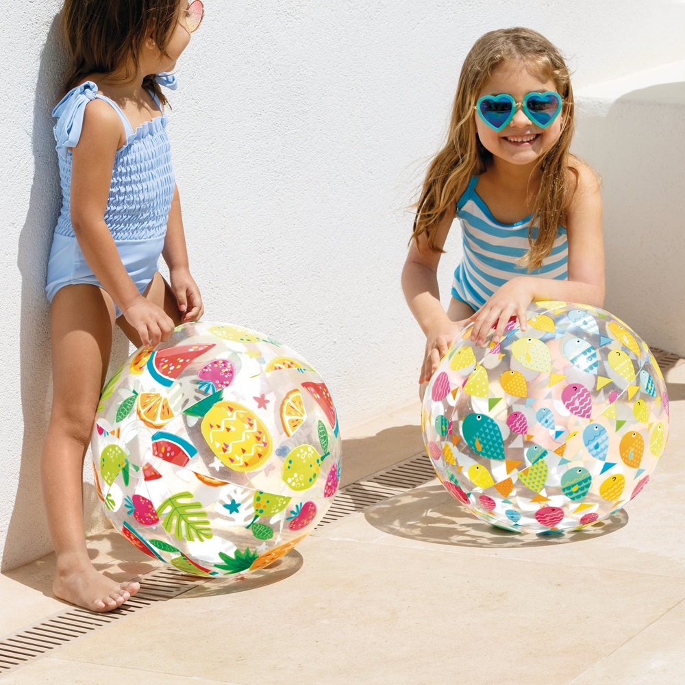 Intex inflatable beach ball Tropical Fish is perfect for play in the sea, pool or on the beach. The beach ball, which is 51 cm in diameter, is made of strong vinyl and equipped with a safety valve. Bring a fun beach ball for the sun holiday or use it at home in the bathhouse or on the home beach.