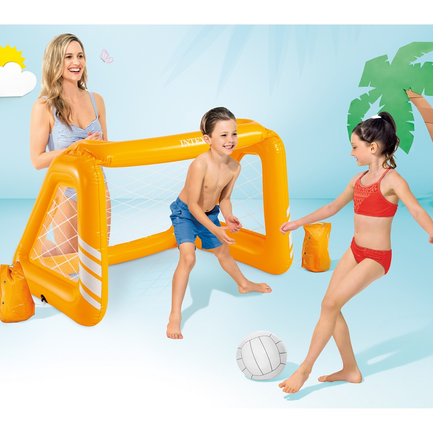 Intex Goal Orange is a smart and fun inflatable goal for both outdoor and indoor use. The goal is 124 cm x 84 cm. The goal comes with two bags that can be filled, for example, with beach sand, so that the goal does not move when it is windy. Use the goal in the pool, garden, park, beach or indoors.