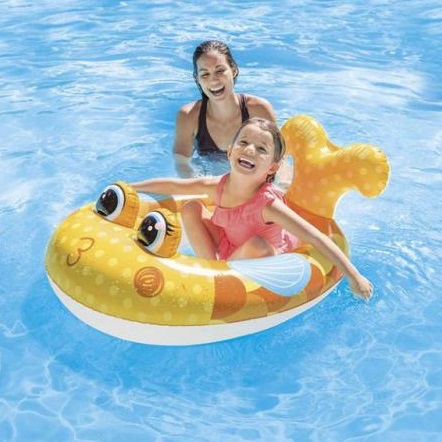 Inflatable fish (Pool Cruiser) for sunny and happy days in the pool. The Intex Pool Cruiser Fish is 117 x 76 cm and has safety valves. The Pool Cruiser is intended for children between 3-6 years of age and has a capacity of up to 27 kg.