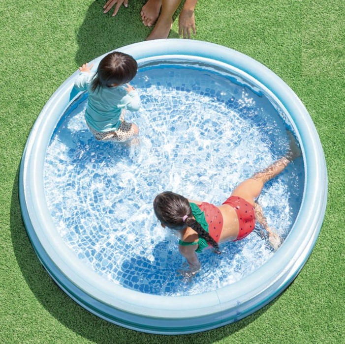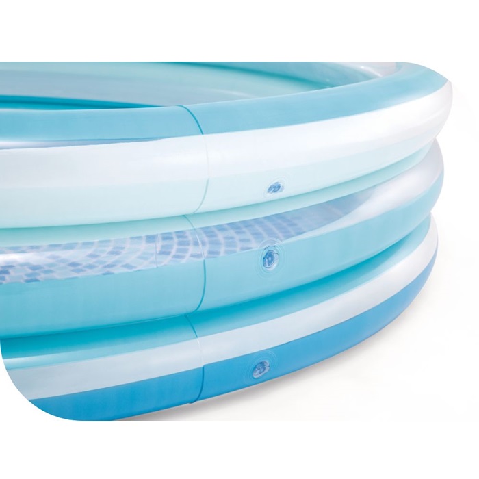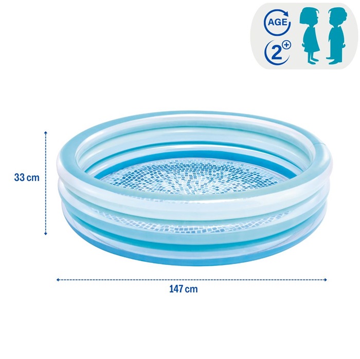 Intex Blue Bliss is a lovely inflatable children's pool with space for water fun. The children's pool is 147 cm in diameter and has two separate air chambers with safety valves, is safety tested and made of durable vinyl.