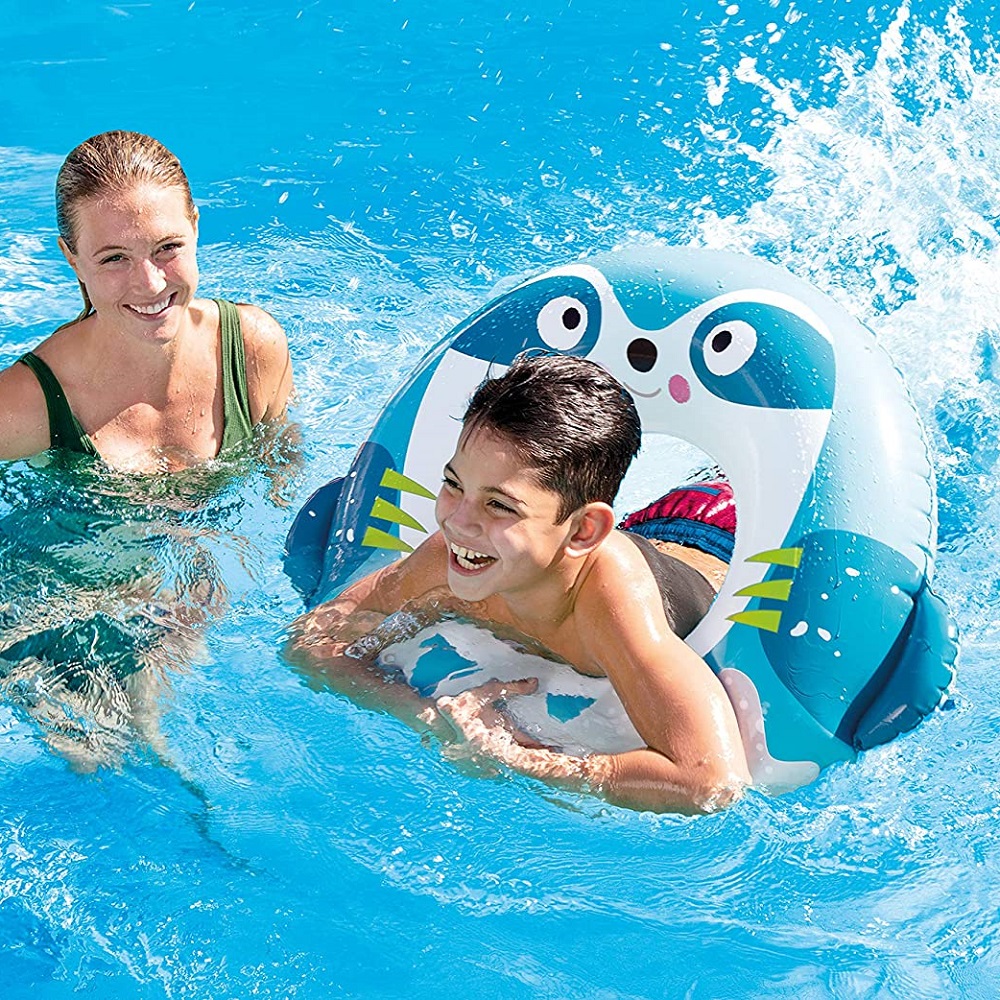 Intex Blue Animal XL is a fun and inflatable larger swim ring for children for beautiful days in both sea and pool. The swim ring is 76 cm in diameter and equipped with a safety valve and is intended for children from about 8 years.