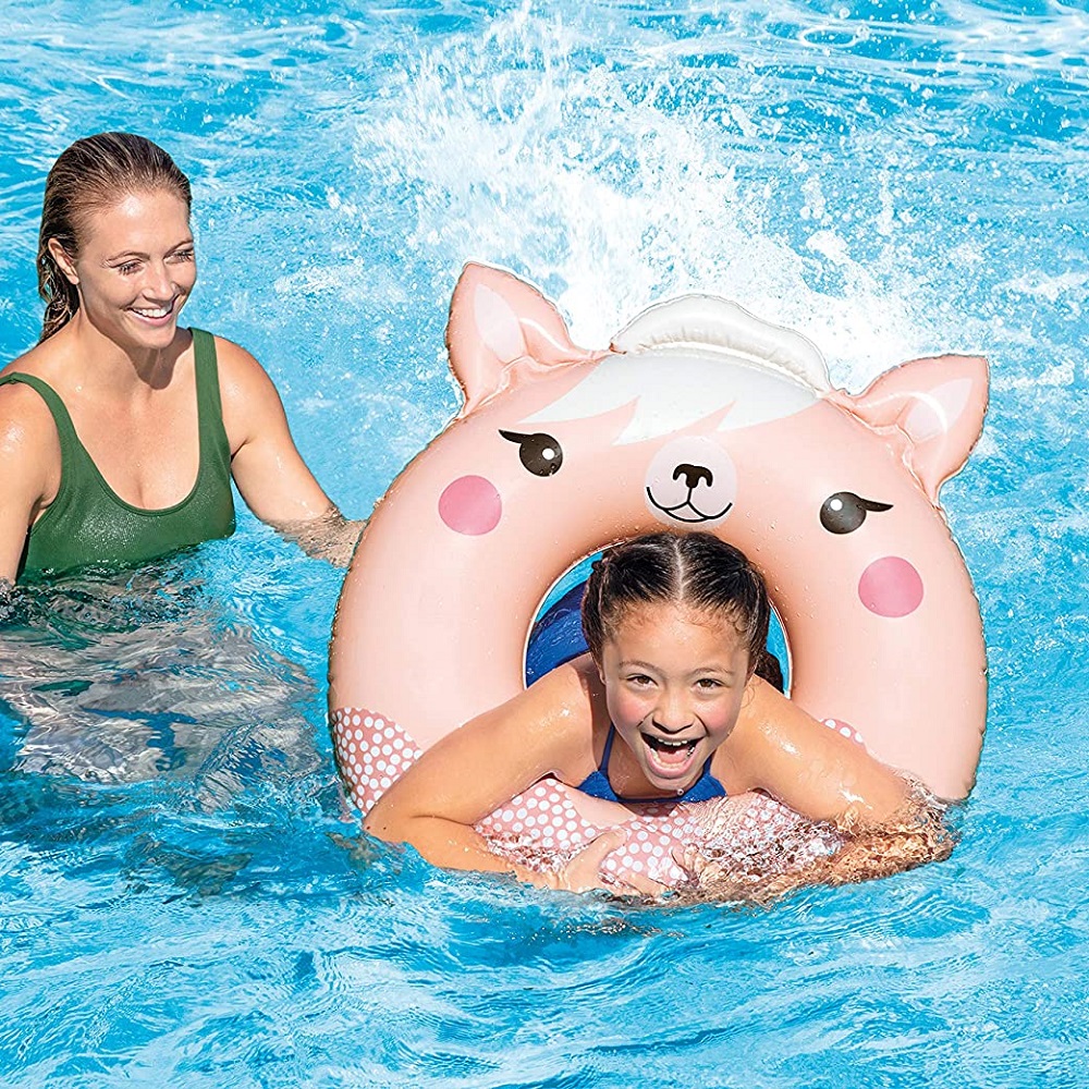 Intex Pink Animal XL is a fun and inflatable larger swim ring for children for beautiful days in both sea and pool. The swim ring is 76 cm in diameter and equipped with a safety valve and is intended for children from about 8 years.