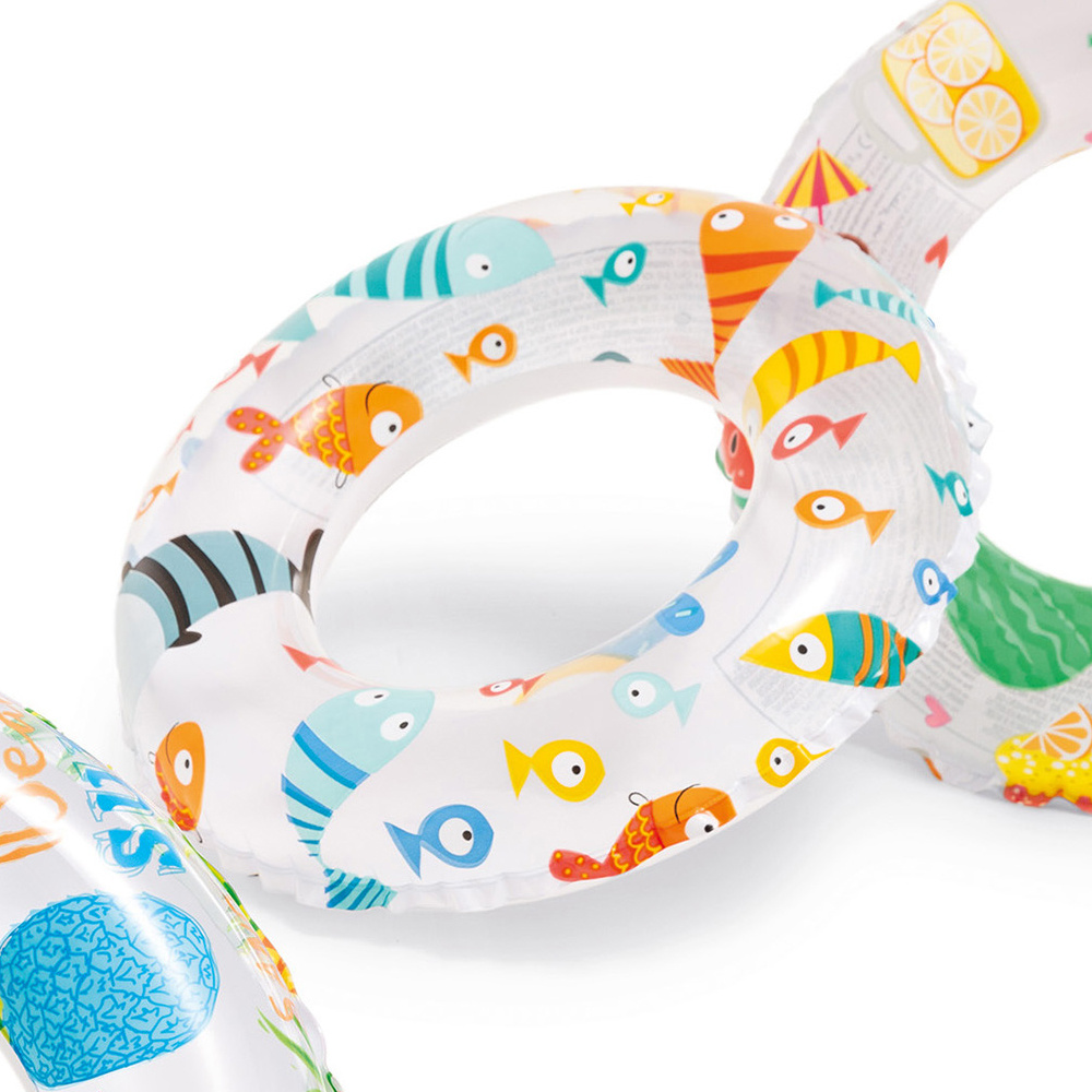 Intex Sea Life inflatable swim ring for children for beautiful days in the sea and pool. The swim ring has a safety valve, is made of strong vinyl, is CE-marked and is intended for children from 3-6 years.