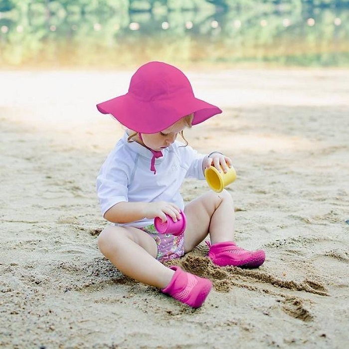 Green Sprout Hot Pink is a practical, comfortable and protective brim sun hat for children and babies made of soft material with a high sun protection factor (UPF 50+) that protects the face and neck against the sun's dangerous UVA and UVB rays. Green Sprout sun hat is made in a nice design with a wide brim, a chin strap, inner fabric with ventilation and a tightening cord with buckle to keep the hat in place on the child’s head.