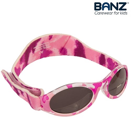 KidzBanz Pink Camo are comfortable and protective sunglasses for children between 2 and 5 years. The sunglasses are made of durable material and have 100 % UV protection. With a soft and adjustable neck strap, KidzBanz sunglasses sit firmly on the child's head.