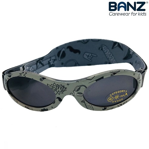 KidzBanz Graffiti are comfortable and protective sunglasses for children between 2 and 5 years. The sunglasses are made of durable material and have 100 % UV protection. With a soft and adjustable neck strap, KidzBanz sunglasses sit firmly on the child's head.