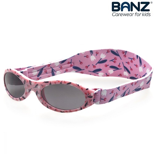 KidzBanz Petite Cherry are comfortable and protective sunglasses for children between 2 and 5 years. The sunglasses are made of durable material and have 100 % UV protection. With a soft and adjustable neck strap, KidzBanz sunglasses sit firmly on the child's head.