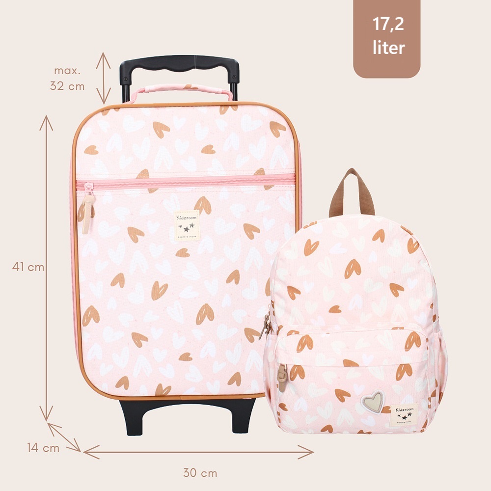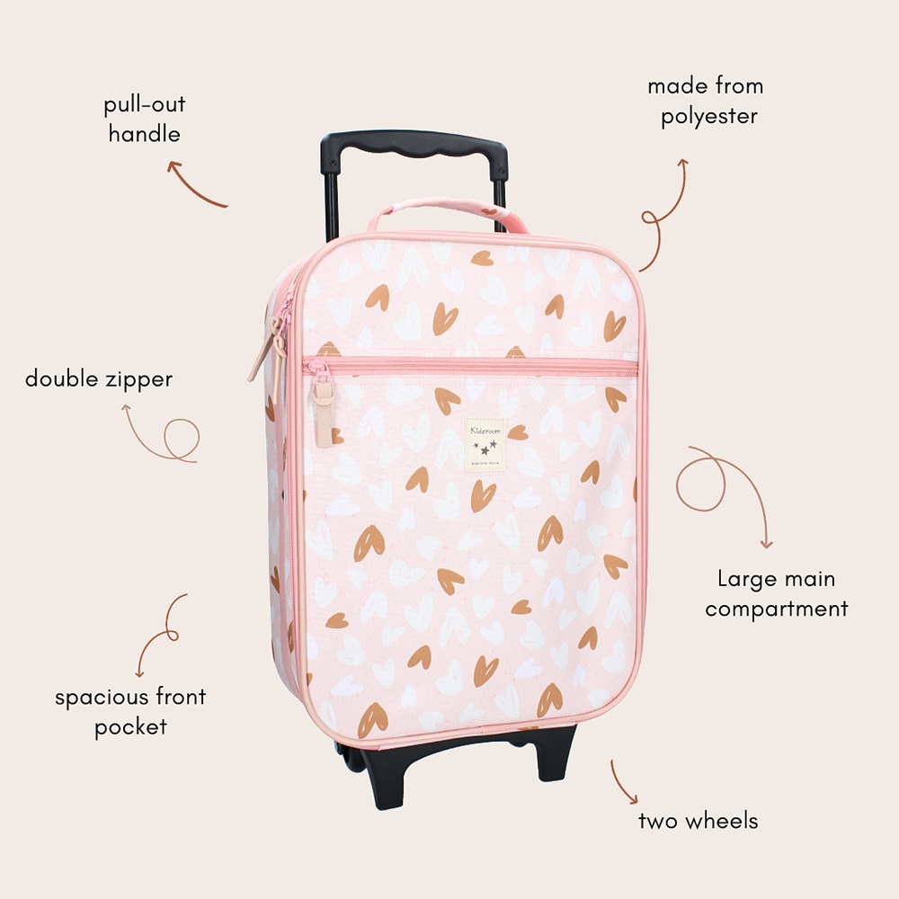 Kidzroom Loving Days is a cute suitcase for children made in a nice and stable design. The suitcase has two wheels, support legs at the front so that the bag can be set vertically, telescopic handle and carrying handle. The suitcase's main compartment of 17.2 liters holds toys, crafts, a change of clothes and other things to take with you on the trip or for an overnight stay with family and friends.