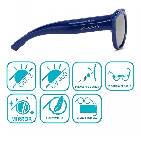 Koolsun Air Ultramarine are durable, stylish and protective sunglasses for children in a modern design and with a good fit. Koolsun sunglasses Air Blush Pink have a pilot shape and have a durable frame and temples in flexible material (TPE). The mirror glasses in Revo technology, which can not break, are made of strong polycarbonate which provides 100% UV protection against both UV-A and UV-B and has high resistance to scratches. All Koolsun glasses come with a storage bag made of microfiber.